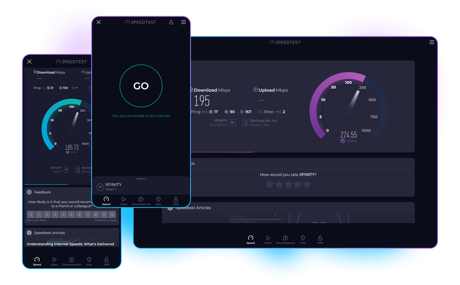 Trước khi loay hoay thay đổi, hãy kiểm tra tốc độ thực tế của đường truyền mà bạn đang nhận được bằng các trang test tốc độ như Speedtest, Fast.com (có thể tìm ngay trên trình duyệt). Biết được tốc độ hiện tại giúp bạn đánh giá đúng vấn đề và đối chiếu với gói cước nhà mạng đang cung cấp.