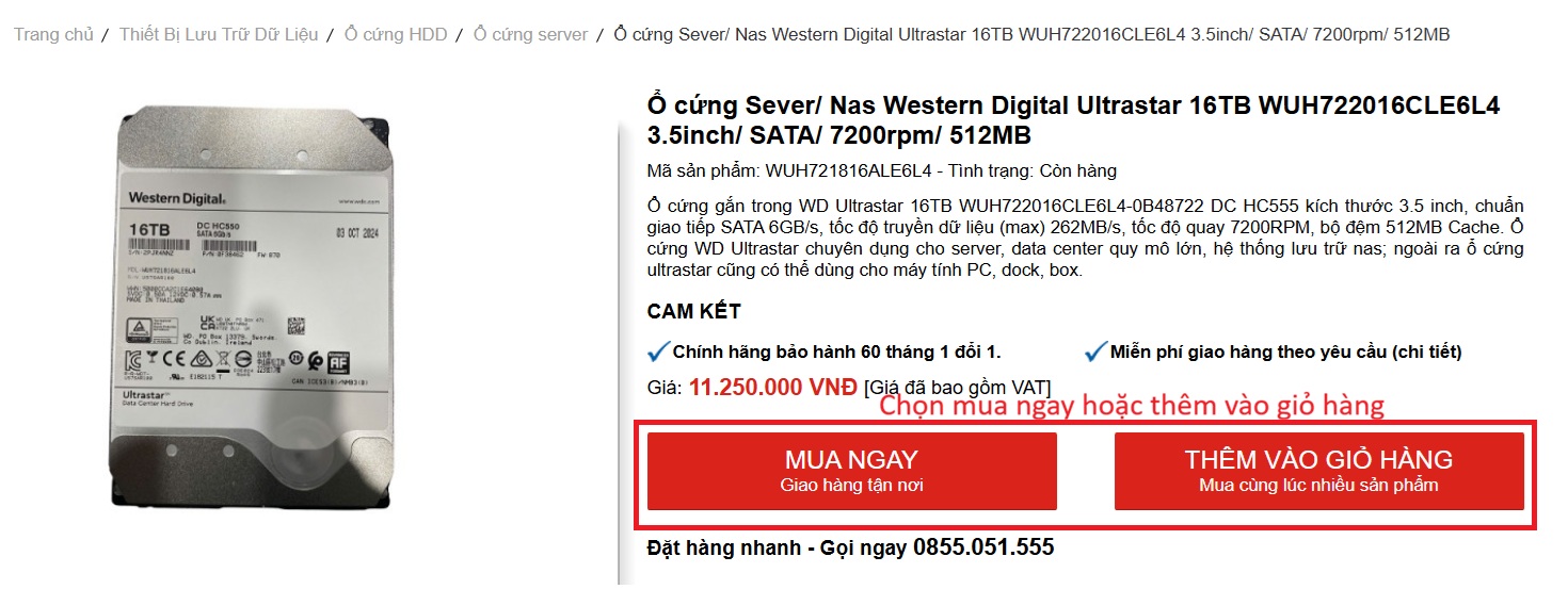 - Tiến hành đặt mua sản phẩm bằng cách chọn số lượng cần mua (Có thể sửa số lượng sau) và nhấp chuột và nút "Chọn mua" hoặc ấn "Thêm vào giỏ hàng" để tiếp tục lựa chọn thêm sản phẩm khác cần mua