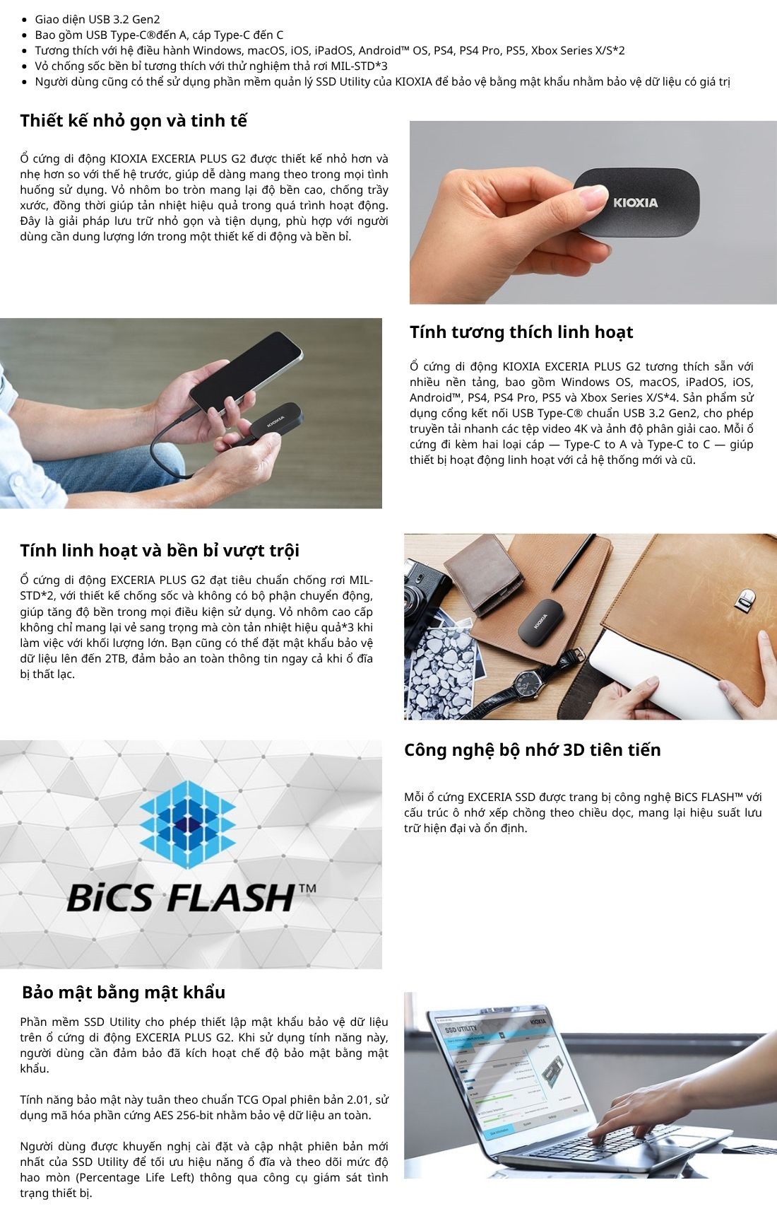 Tương thích hệ điều hành: Windows, MacOS, Linux,… - Có thể định dạng lại khi sử dụng trên các hệ điều hành khác.